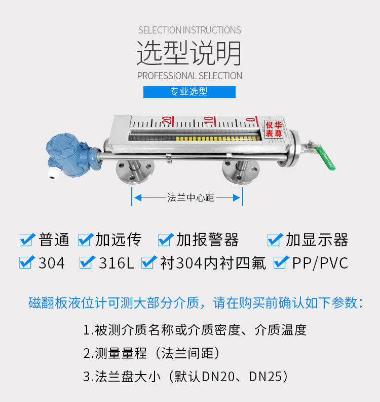 磁翻板液位計是我公司研發人員對國外液位計深入研究開發的先進產品。作為物位儀表的專業生產廠商,我公司努力提高液位測量技術,相對于傳統的液位測量方式,該產品按原化學工業部頒布的磁性液位計標準研制生產,具有可靠的安全性,它彌補了玻璃板(管)液位計指示不清晰,易破碎的不足,不受高、低溫度劇變的影響,不需多組液位計的組合。具有防爆,防腐,耐高壓,耐高溫等特點。它比傳統的玻璃管,板式液位計具有更高的可靠性、安全性、先進性、實用性。